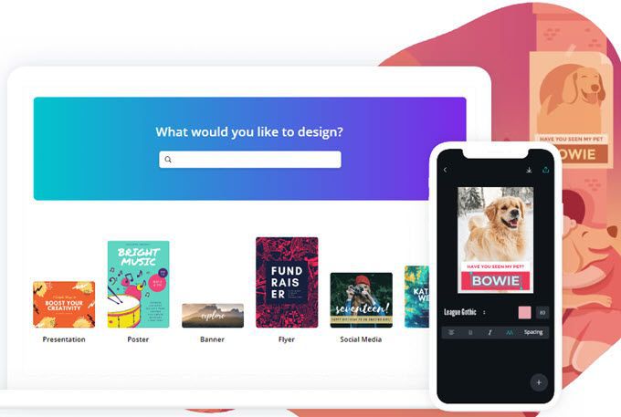 Canva on the other hand, is loaded with preset designs and specific sizes for all major social media platforms. You will also find presentations, business cards, stickers and anything else you might need to expand your business. You can even – this is very difficult though so I use Illustrator for this usually, create vector images. I’ve done some really basic things like creating a British Bulldog with the Union Jack for skin.